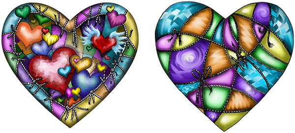 The Danville call for submission didn’t give any required themes to follow, so I went with what’s been on my mind. Treasured Jewels (the top design) reflects my thoughts on how precious are the people I love. I need to remember how easy it is to lose those I love. The winged heart is a reminder to take care incase they leave.