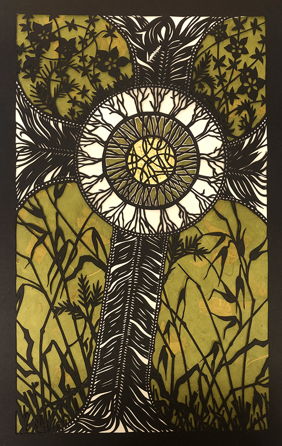 I’m one of those artists that likes a prompt to get my creative mind spinning. As a member of the Guild of American Papercutters, I received a call for their upcoming show. The show’s theme is The Understory. They may have chosen the theme because of the popularity of the book The Overstory. If you haven’t read the book, do. It will change how you perceive trees. I know I value them more. The life on our our planet is supported by these amazing, living beings. I’m in awe of them. And, all that life from a small seed. There is, indeed, a inner story in each one, some told across centuries.
