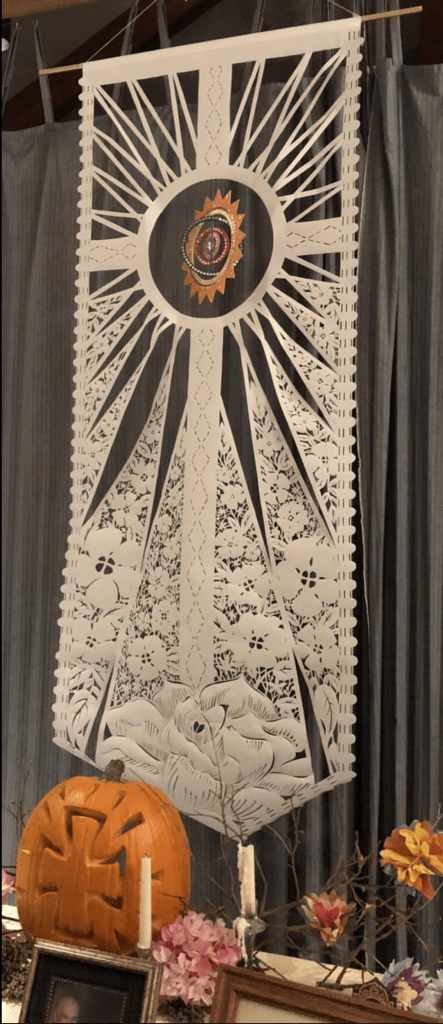 Debra began doing paper cut as many American children do. She started in elementary school cutting paper snowflakes during the Winter holidays. It wasn’t until recently that she took this art form to a higher level. For an All Saints celebration at her church, she create this 4 X 10′ piece. Nothing like starting out with a big challenge. With the success of this, the game was on!