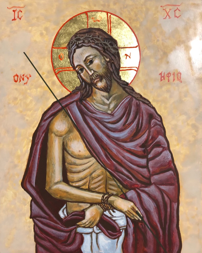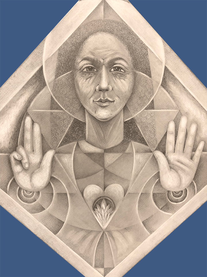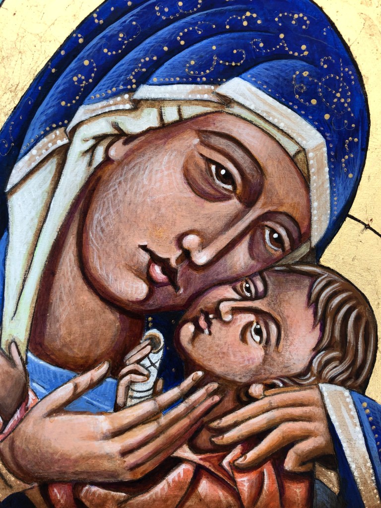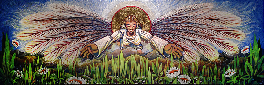 With this icon I make a change in direction. Icons are used to call us into prayer. I hope this icon is experienced as a visual prayer moving us out into the blessed community we must work towards.